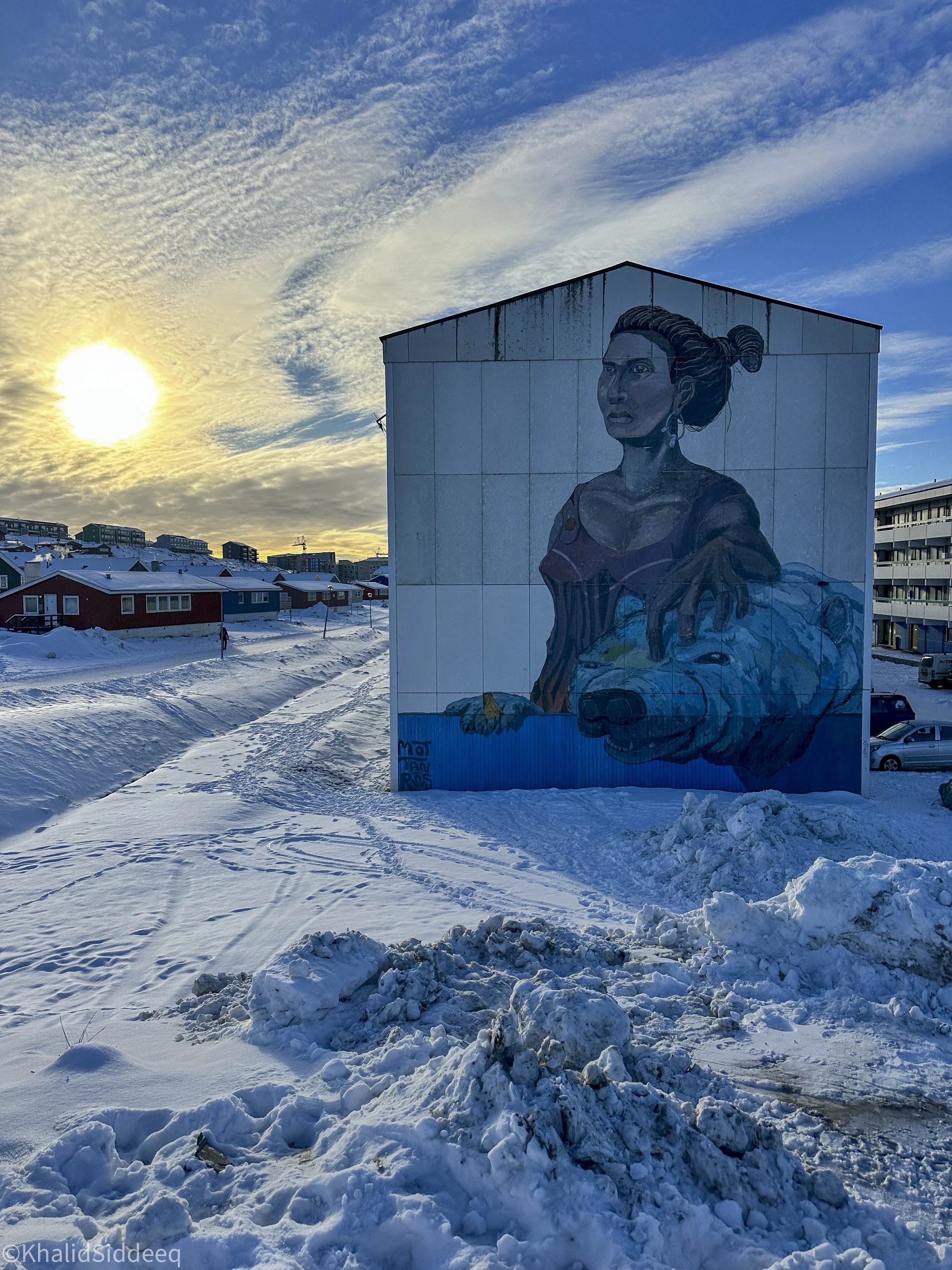 في يومي الأول وفور وصولي العاصمة، التقيت بإمرأة مسنة كانت تتجول مع كلبها في يوم بارد مشمس، دقائق قليلة معها جعلتني أفهم تاريخ جرينلاند جيدًا