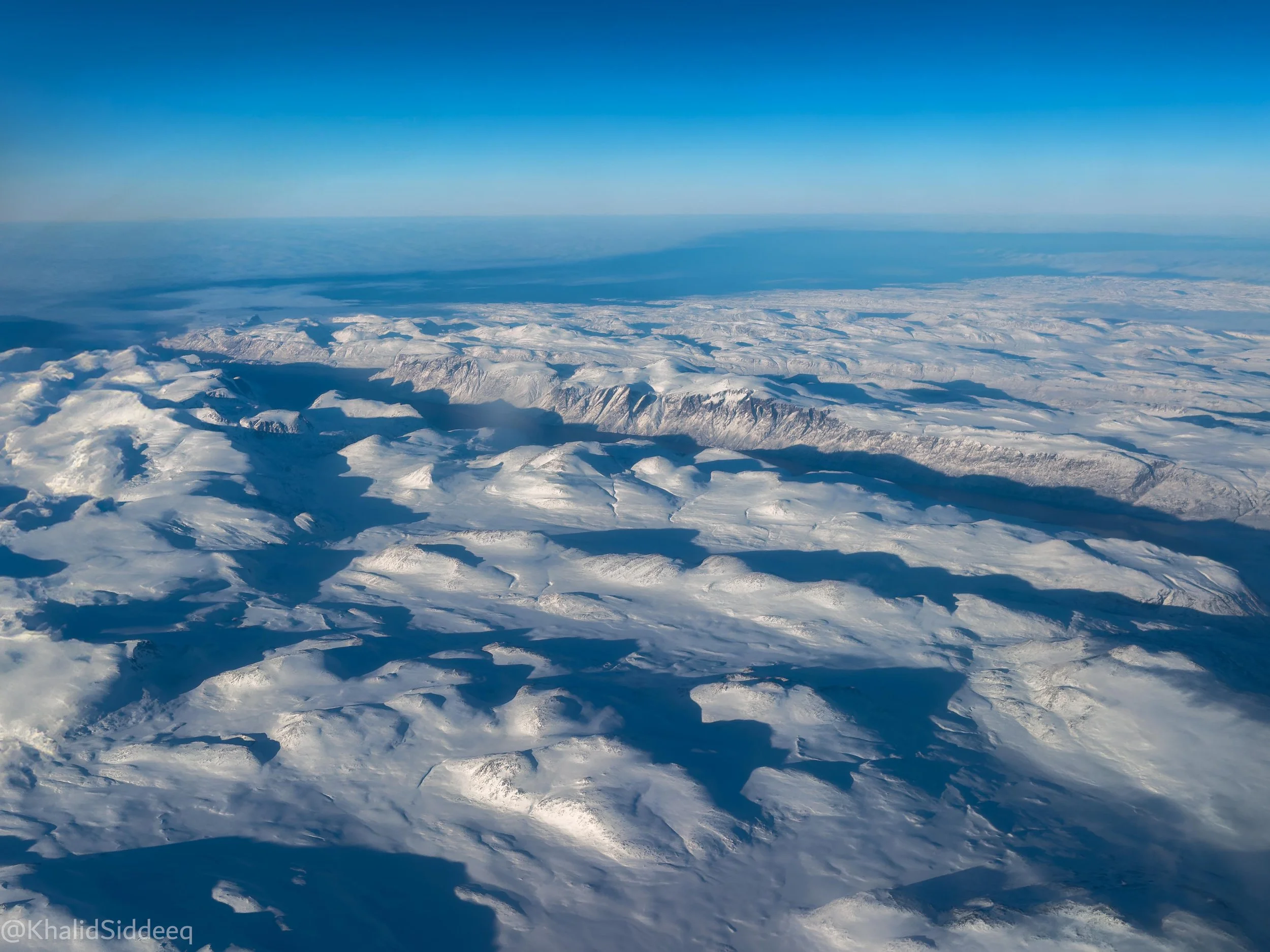 تحت هذه الجبال، الكثير من الثروات الغنية، لا يمنع الوصول إليها سوى كمية الثلوج المرتفعة، صورة ألتقطت من الطائرة