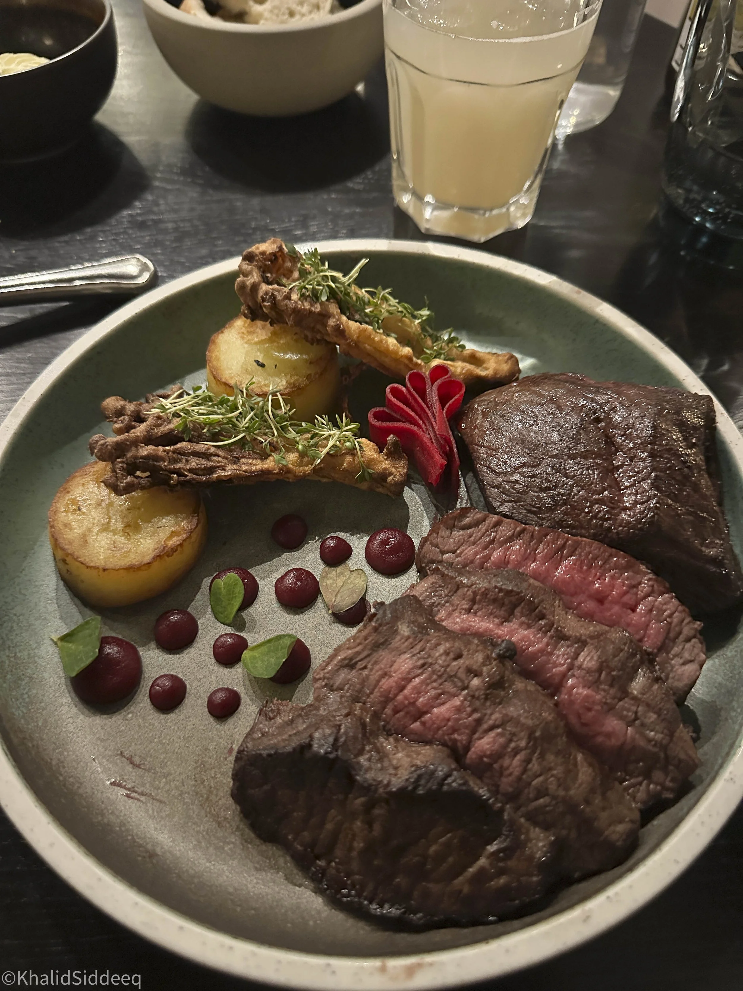 تناولت لحم الرنة كثيرًا في السابق، ولكن هذه المرة الأولى التي أتناول بها لحم ثور المسك، قوامه قوية ورائحته ثقيلة، لم أستسغه كثيرًا