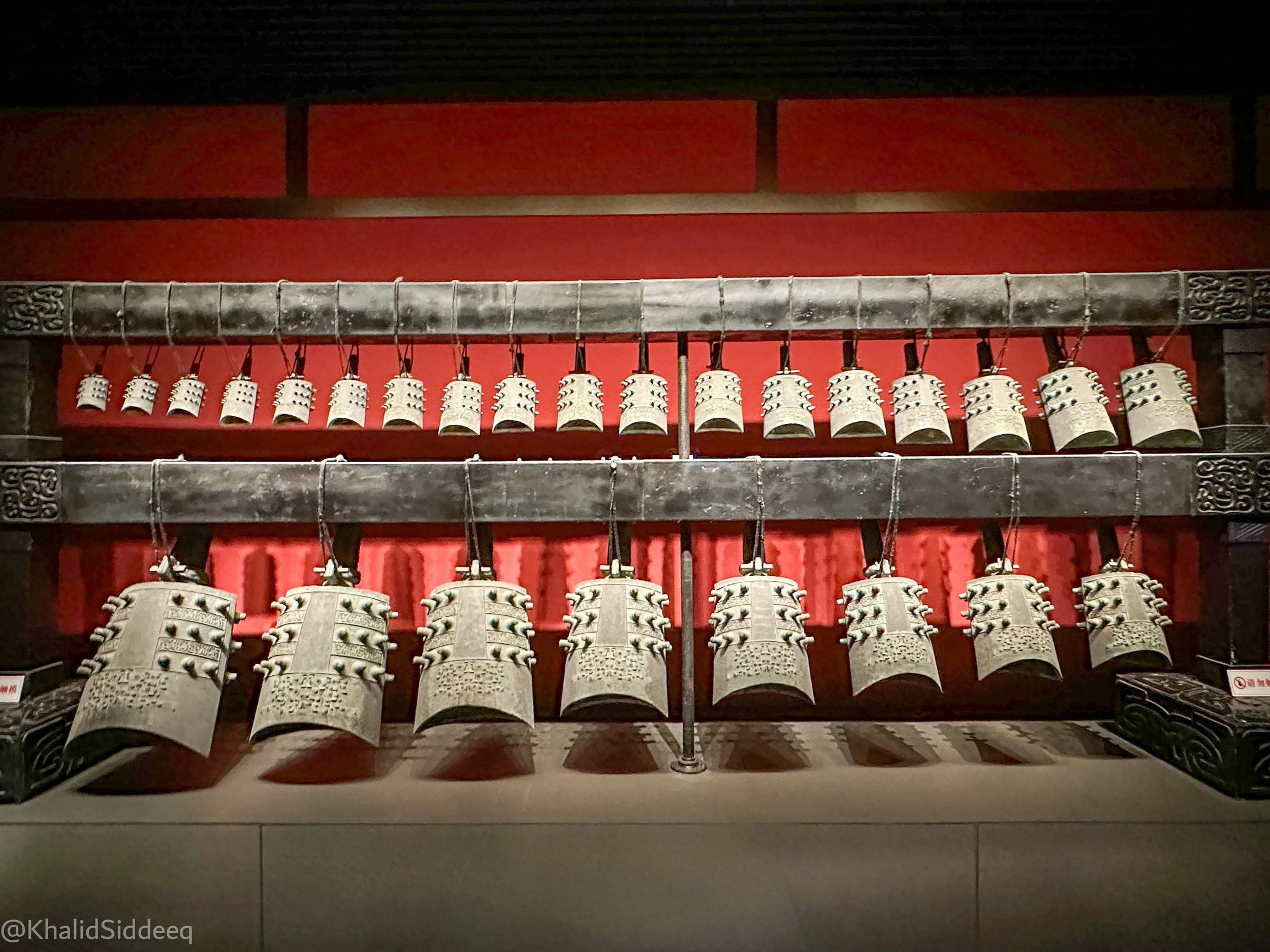 مجموعة أجراس برونزية موسيقية من أقدم وأهم الآلات في تاريخ الصين، متاحة للإستماع في متحف خنان