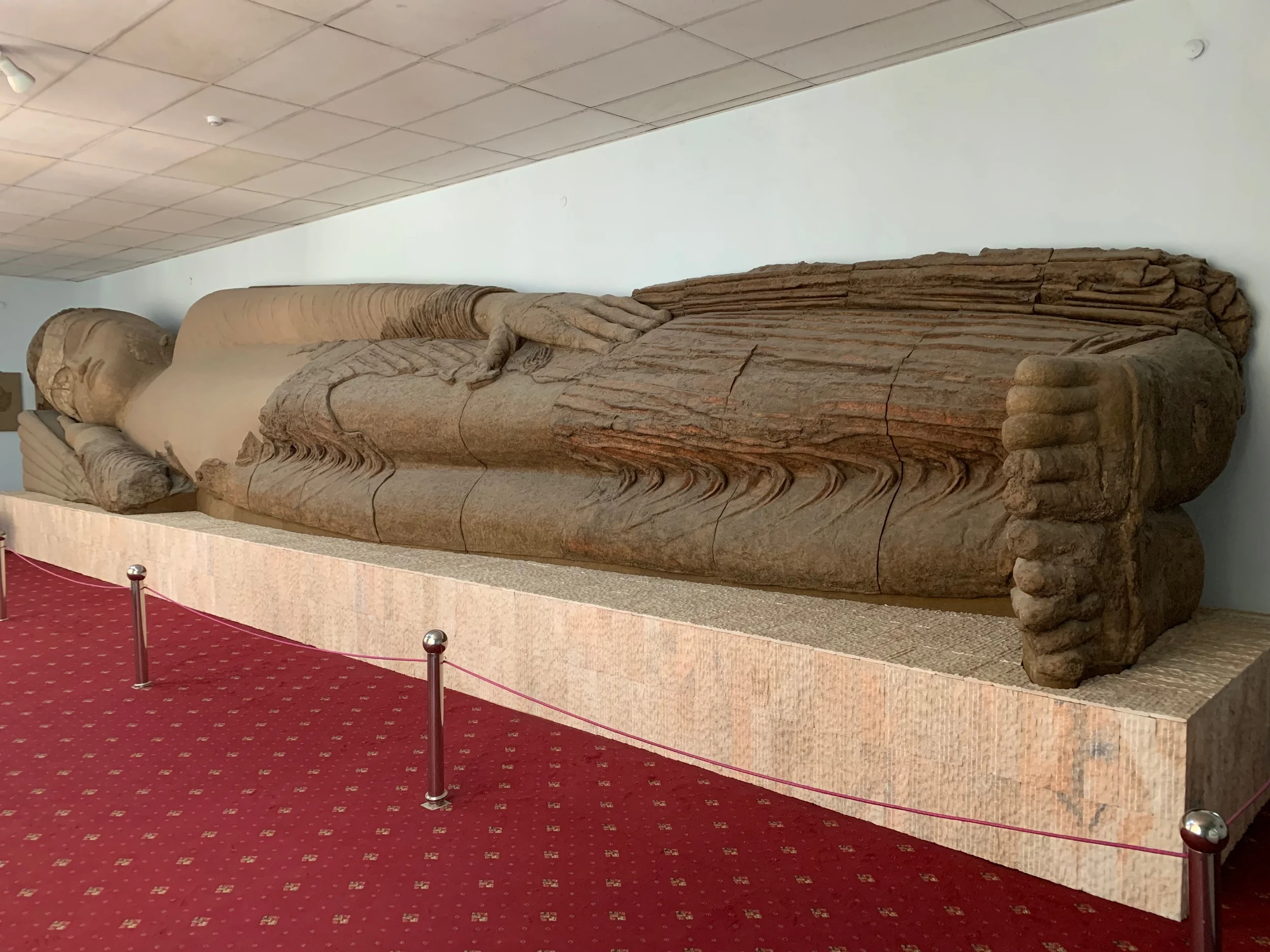 تجد في هذا المتحف تمثال لبوذا النائم والذي يبلغ طوله ١٣ متر، عندما أزيل من موقع يدعى Ajina Teppe في سنة ١٩٦٦م، يعود تاريخ هذا التمثال لعهد أسرة كوشان، (حوالي ٥٠٠م). موقع المتحف